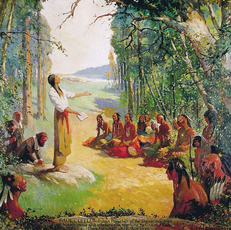 Rev. Cuffee converted to Christianity in his early 20's. He was ordained by the Presbyterian Church and became a preacher and missionary to his own Shinnecock and other Native communities around Long Island (present day Mastic & Mastic Beach, Hampton Bays, Hampton Bays, and Montauk). Rev. Cuffee created meeting grounds and safe havens for Long Island Natives to hold diplomatic and spiritual practices.